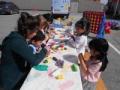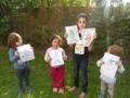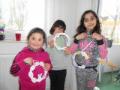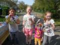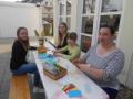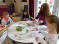Die Kinder vom Wohnpark dürfen ihre eigenen Bilder mit Wolkenschleim- Modelliermasse dekorieren.