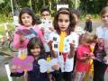 Wir basteln bunte Sonnenkappen. Zum Schluss bekommen die fleißigen Kinder noch ein kleines Geschenk.